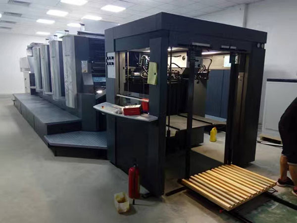 本公司開發(fā)生產(chǎn)了一種印刷機(jī)預(yù)裝紙裝置,適用于國內(nèi)外各品牌印刷機(jī),用于印刷機(jī)進(jìn)紙的可垂直升降的進(jìn)紙托盤,其特征在于: 在印刷機(jī)進(jìn)紙托盤上安裝導(dǎo)軌,進(jìn)紙托盤上導(dǎo)軌與地面安裝的導(dǎo)軌對接,所述導(dǎo)軌和所述進(jìn)紙托盤之間還設(shè)置一個垂直于所述進(jìn)紙托盤的縱長的定位尺。新型的印刷機(jī)預(yù)裝紙裝置通過導(dǎo)軌可以精確定位小平板車,再通過定位尺對其上的紙張進(jìn)行定位,從而快速準(zhǔn)確地對小平板車上的紙張進(jìn)行定位作業(yè)。本實用新型的印刷機(jī)預(yù)裝紙置具有結(jié)構(gòu)簡單,高效,定位準(zhǔn)確等優(yōu)點(diǎn)。